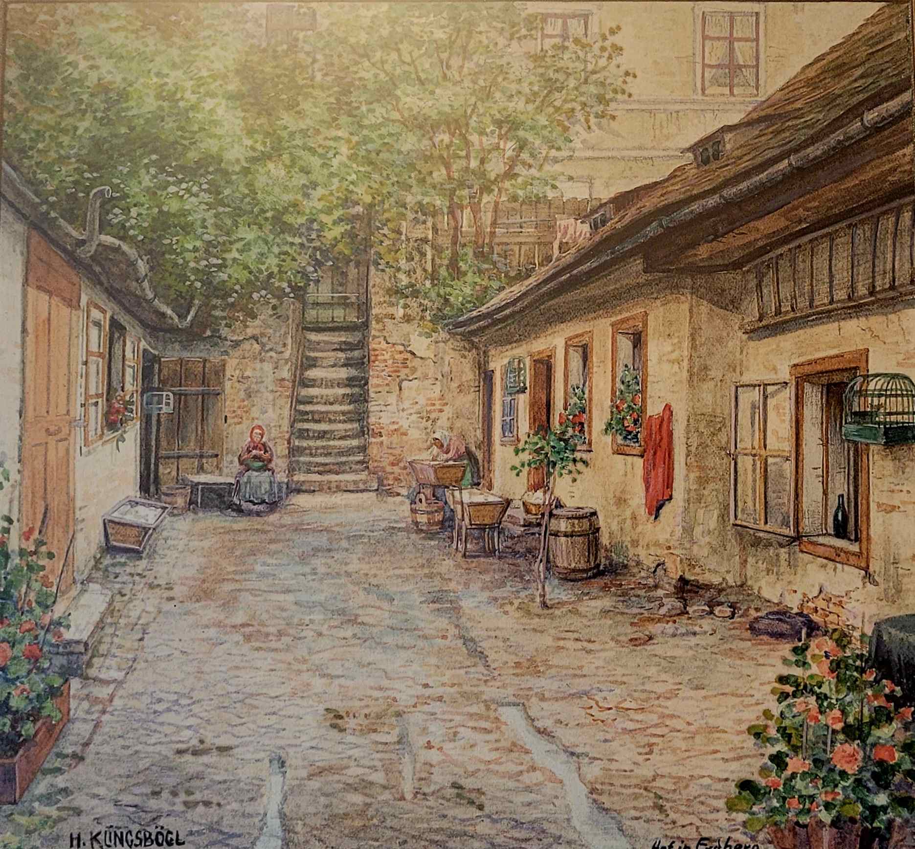 Dunaj / Wien, Hof in Erdberg Hermann Klingsbögl Okoli 1920 Slika - akvarel - 17,6 x 19 cm Povpraševanje