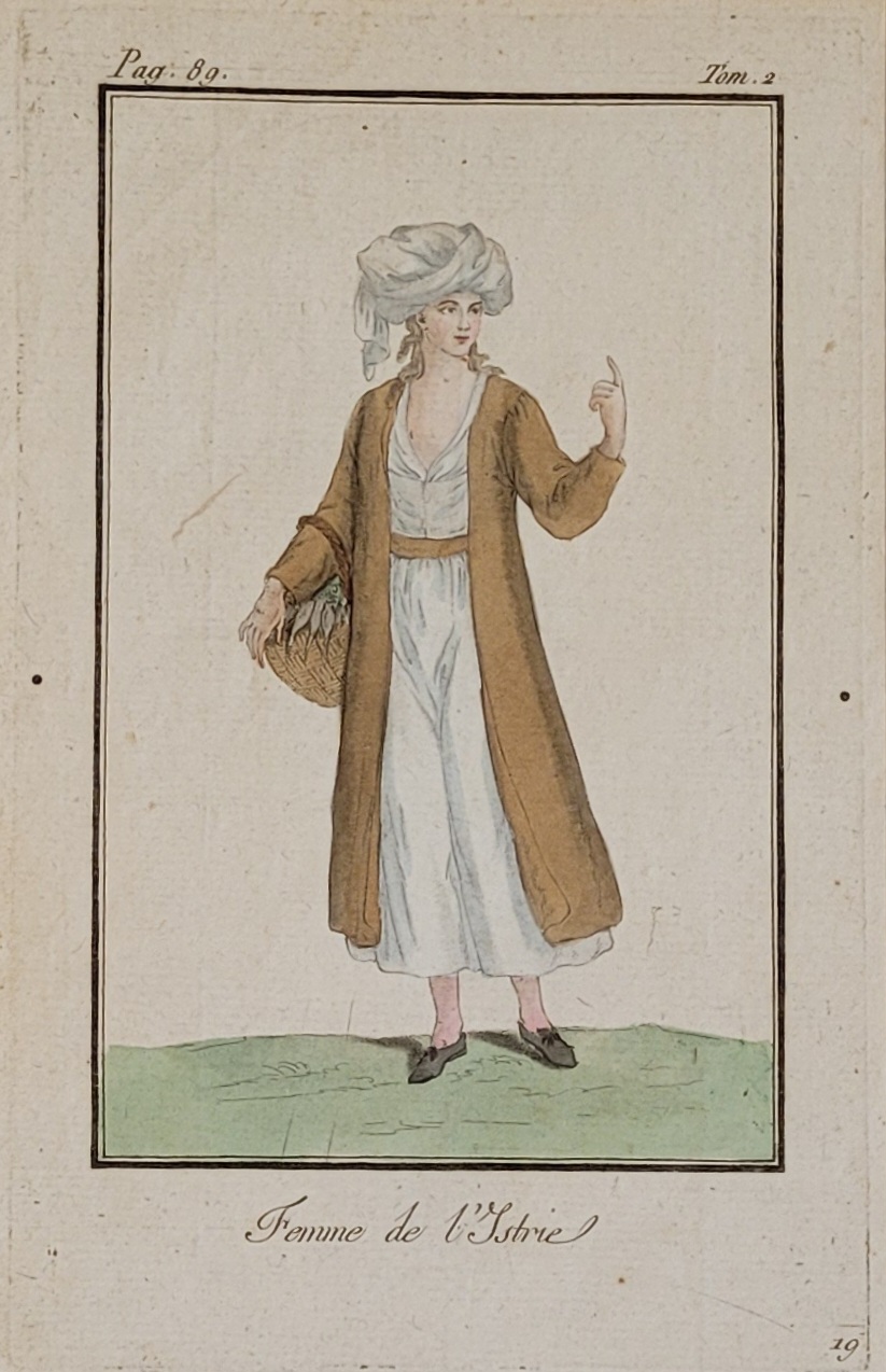Istranka v narodni noši Jacques Grasset de Saint-Sauveur 1788 Portret -- kolorirana jedkanica -- 18,6 x 11,6 cm Povpraševanje