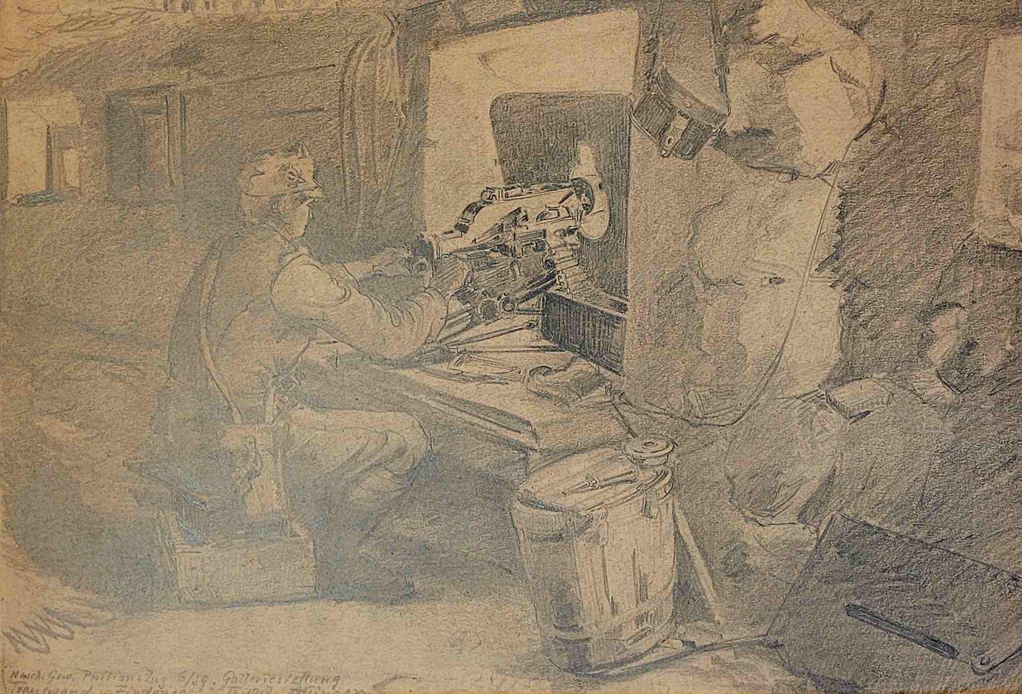Mitralješko gnezdo v kaverni na soški fronti Anton Klinger 25. 9. 1917 Slika -risba - 27 x 39 cm Povpraševanje